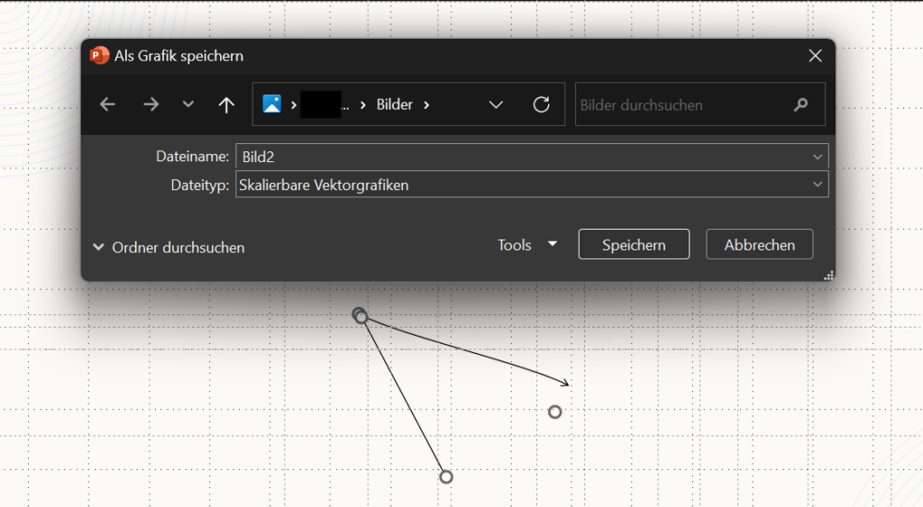 Mit PowerPoint können auch Vektorgrafiken erstellt werden. Das sind Grafiken, die aus Linien und/oder Formen bestehen und nicht aus einzelnen Bildpunkten. Diese Grafiken basieren auf Berechnungen, weshalb sie auch bei starker Vergrößerung scharf bleiben. Diese Grafiken können in der Präsentation genutzt oder in verschiedenen Formaten gespeichert werden.