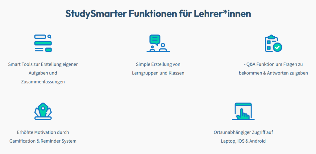 Mit StudySmarter können Lehrkräfte ihren Lernenden eine digitale Teilnahme am Unterricht ermöglichen. Die Plattform bietet den Lernenden zudem die Möglichkeit, eigene Lernmaterialien wie Karteikarten zu erstellen. Darüber hinaus kann die Unterstützung einer KI genutzt werden, um offene Fragen zu klären oder Begriffe erklären zu lassen. Diese Funktionen fördern ein interaktives und individualisiertes Lernen, das sich flexibel an die Bedürfnisse der Nutzer anpasst.