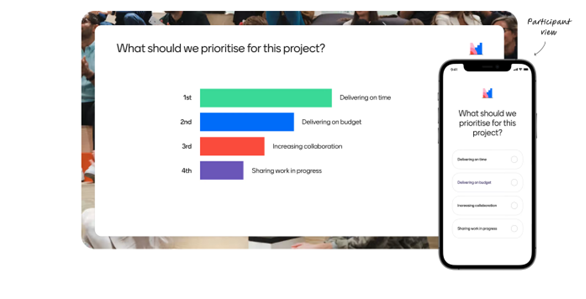 Mit Mentimeter können Sie auch fundierte Entscheidungen treffen, indem Sie das Publikum in den Entscheidungsprozess einbeziehen. Durch Abstimmungen und Umfragen können Sie die Präferenzen und Meinungen der Lernenden sammeln und die Ergebnisse in Ihre Entscheidungsfindung einfließen lassen. Dies fördert nicht nur die Teilnahme, sondern sorgt auch für eine demokratische und transparente Entscheidungsfindung.