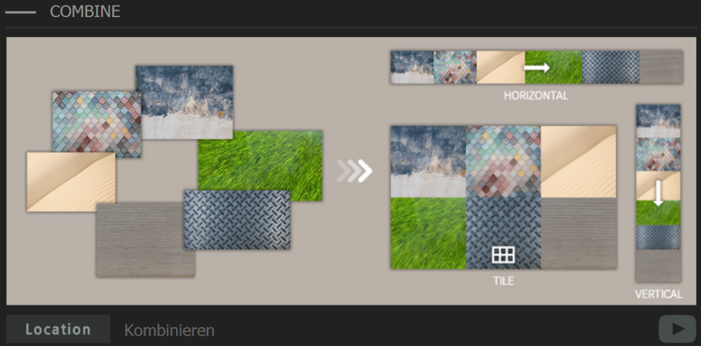 Mit der Collage und Combine-Funktion können mehrere Fotos kreativ auf einem einzigen Bild zusammengefügt werden. Die College-Funktion ermöglicht, die Bilder an einem vorgegebenen Raster oder auch komplett frei auszurichten. Die Combine-Funktion eignet sich, um Bilder horizontal oder vertikal zusammenzufügen.